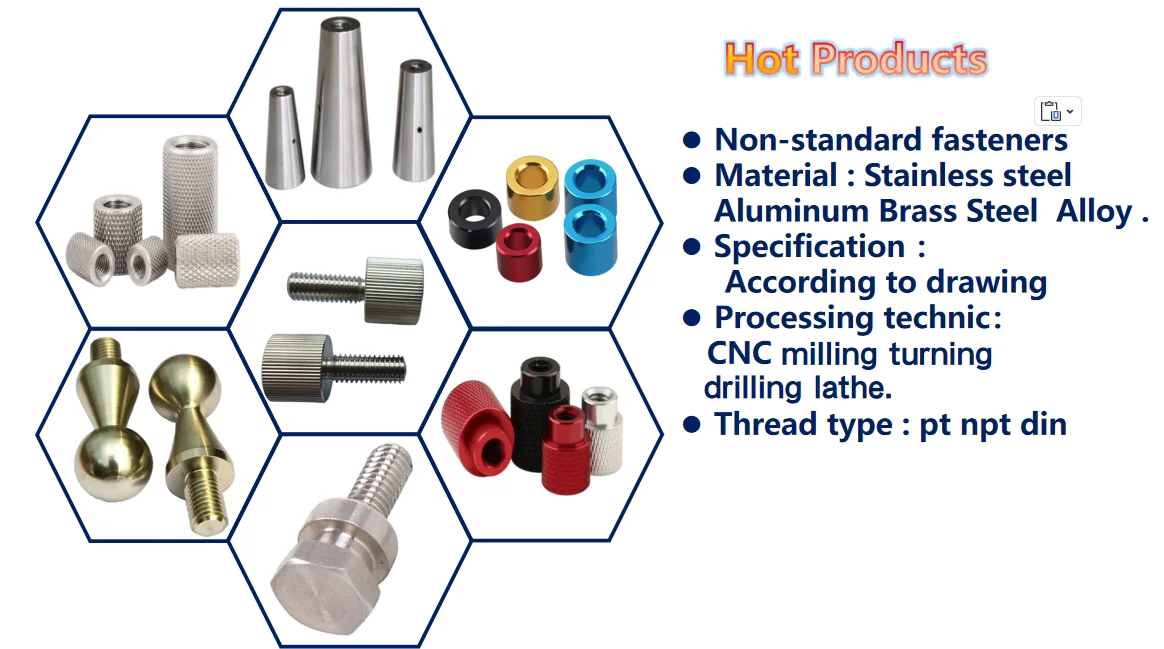 The main products include CNC machining services /CNC machining parts /CNC machining non-standard fastener /Terminal pins/CNC machining non-standard pipe fitting /Laser cutting services /Sheet metal services etc.